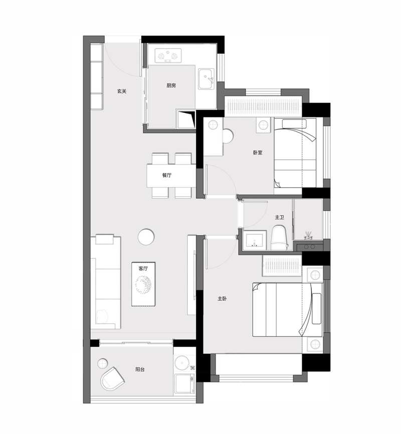 A户型建面约70㎡两房一厅一卫
